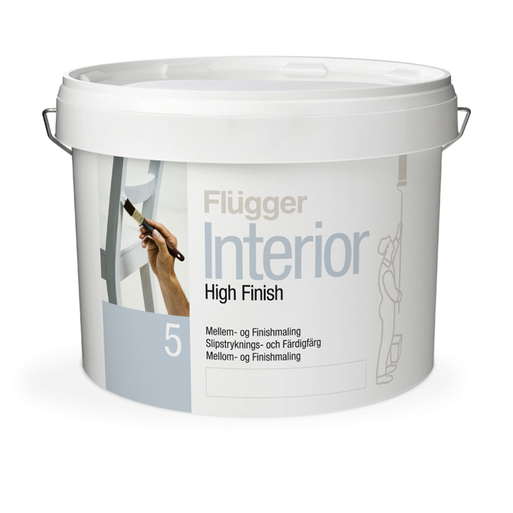 Матовая акриловая краска – грунт с высокой кроющей способностью. Создаёт равномерное покрытие, а, при использовании, как подложки, гарантирует прекрасную адгезию для последующей обработки. Подходит для влажной и сухой шлифовки абразивом. Как финишный слой, обеспечивает матовую поверхность, которая - по сравнению с красками той же самой степени блеска - является более крепкой и стойкой к истиранию. Маркирована европейским экологическим лейблом ECO. Без грунта не блокирует проникновения пятен от водных красителей, протечек воды или никотина, проявления сучков и смолы дерева. Flugger Interior High Finish 5