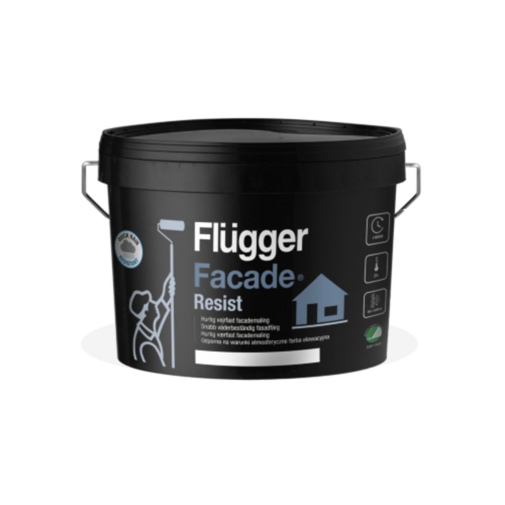 Flugger Facade Resist - это матовая фасадная краска, изготовленная на основе 100% акриловых компонентов, которая обладает уникальными характеристиками и пригодна для внешних работ на различных минеральных поверхностях. Вот основные характеристики и преимущества этой краски: