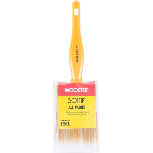 Мягкая прямая кисть. Мягкая высококачественная кисть для покраски всех поверхностей. Кисть изготовлена из смеси нейлона с полиэстером. Для всех акрил латексных и масляных красок. Мягкие кончики кисти обеспечивают гладкую покраску. тальной металлический ободок с медным покрытием. Очень удобная, желтая как жемчуг, твердая пластиковая ручка Кайзер. Wooster Softip Flat