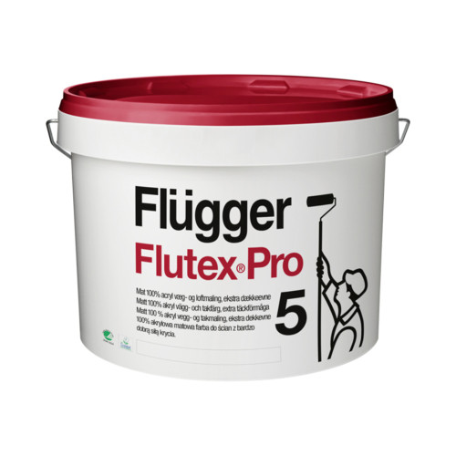Матовая 100% акриловая краска, для стен и потолков внутри помещений, с повышенной кроющей способностью Flugger Flutex Pro 5