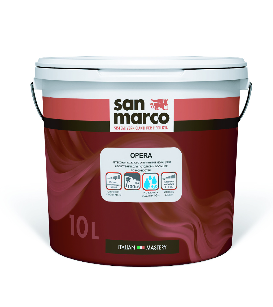 Глубоко-матовая краска с отличными моющими свойствами для потолков и больших поверхностей Sun Marco Opera